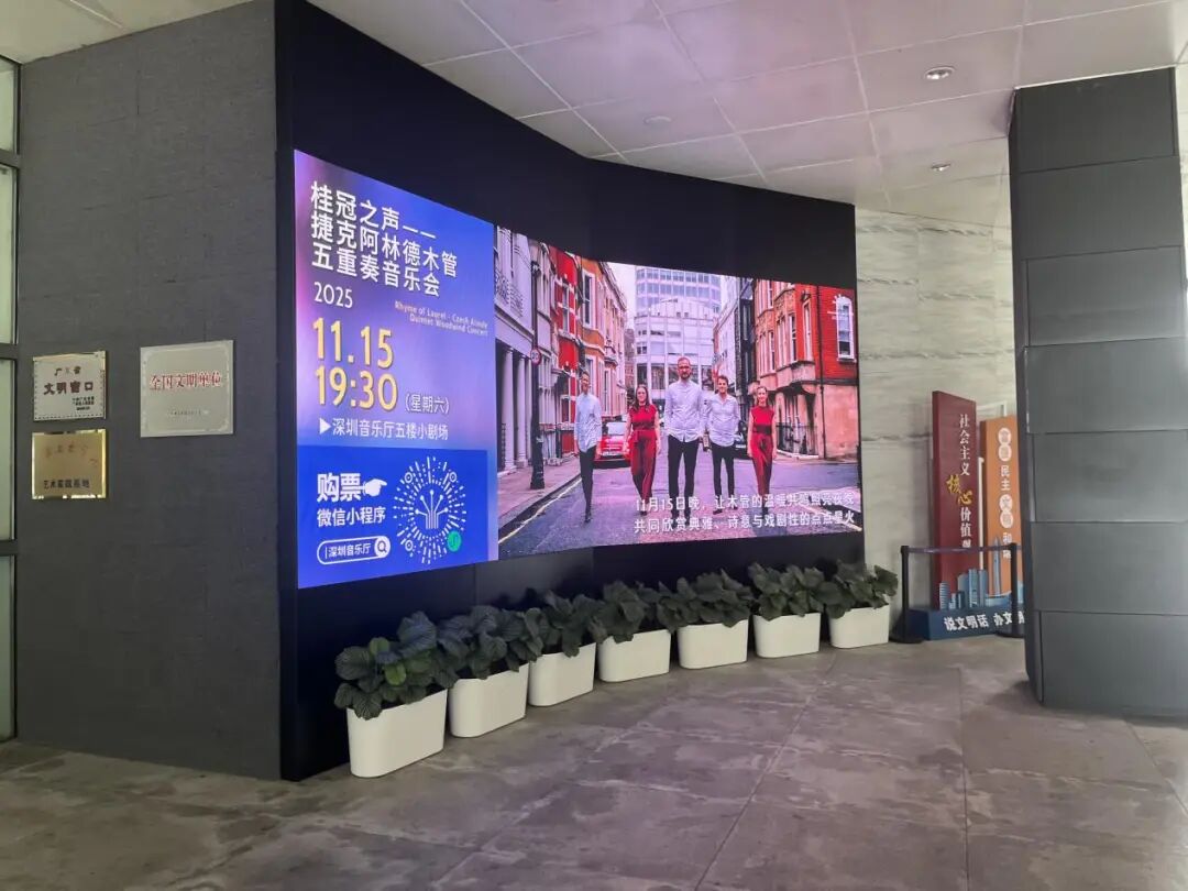 在深圳音乐厅,一场视觉升级悄然进行——由中视创达承建的两块雷曼COB BF1.2系列LED显示屏在正常运行中,为这座音乐圣殿再添科技光彩!